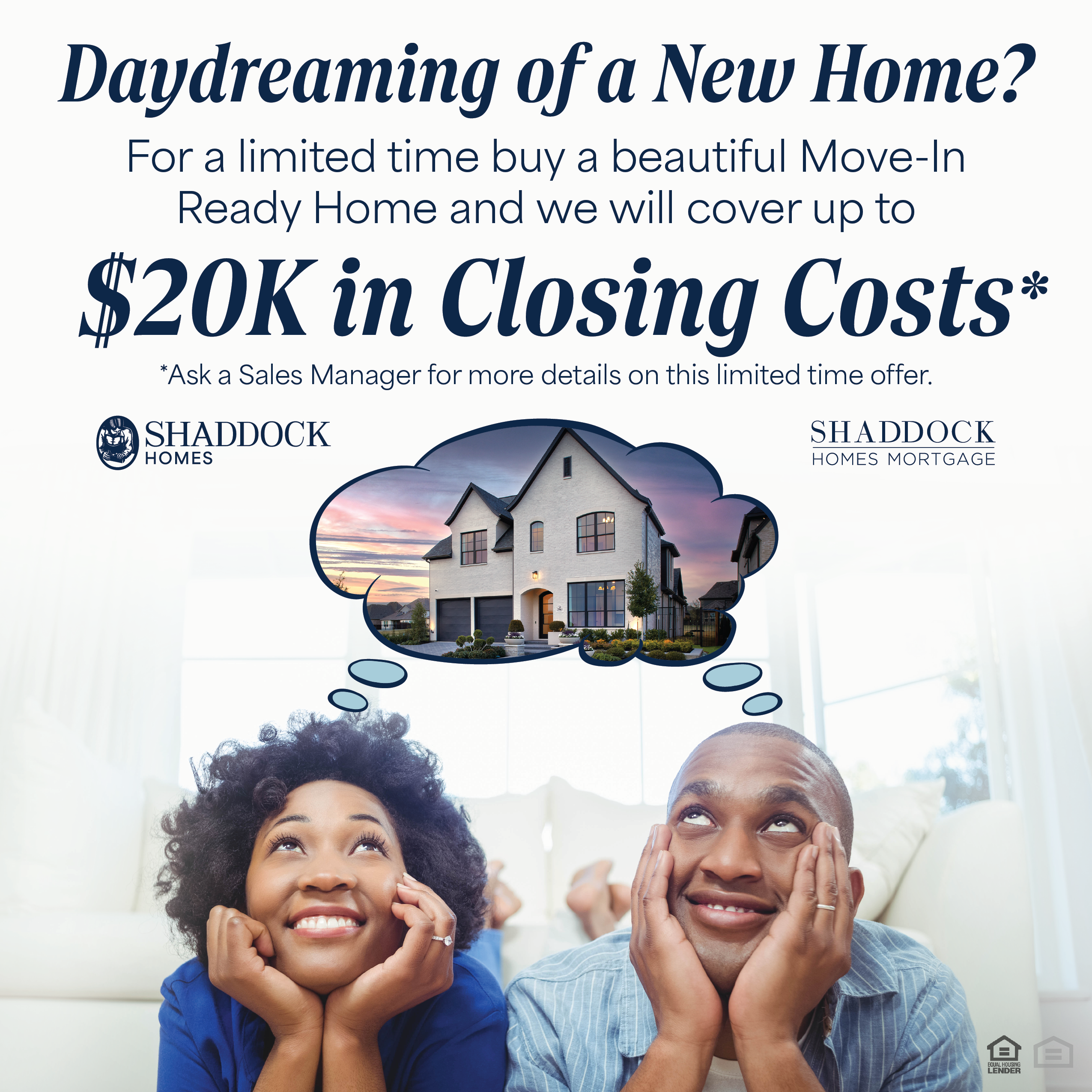 For a limited time buy a beautiful Move-In Ready Home and we will cover up to $20K in Closing Costs. Ask a Sales Manager for more details!